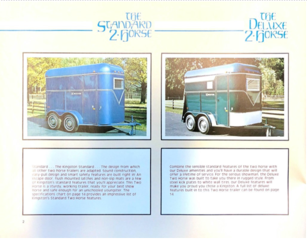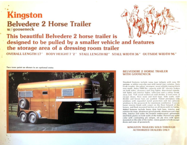 Kingston Trailers has prided itself on its quality product, its workmanship, and its brand for over 60 years. The trailers we make have evolved over the years from all steel trailers to all aluminum, without any decrease in quality or craftmanship. In fact the Kingston Trailer has transformed itself in a horse transportation system, using the finest of quality materialstogether with comfort, quality and style.